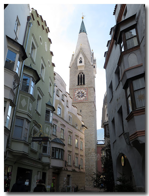 The White Tower in Brixen / Bressanone surrounded by beautiful buildings.